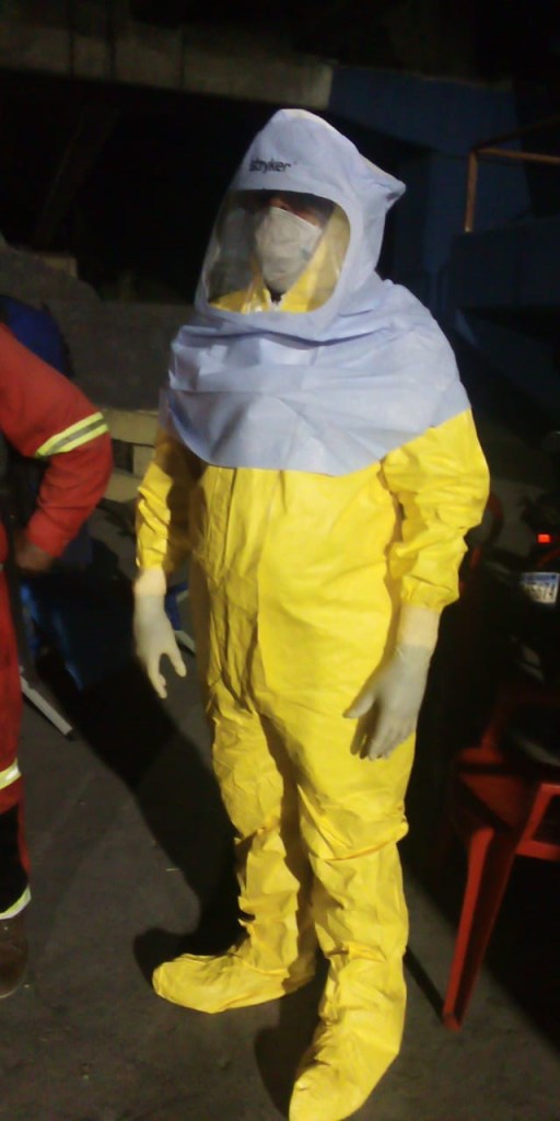 Uno de los camilleros le explico al señor del lugar que todos los trajes que ocupan todos los días los desechan y se colocan nuevos y también están dándole limpieza a la unidad para evitar contagios y que toman todas las medidas preventivas.