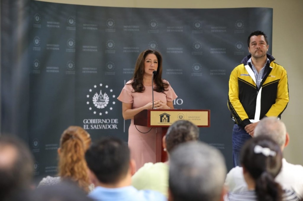 La ministra de vivienda Michelle Sol, declaro suspensión de cuentas de viviendas. Foto (FSV)